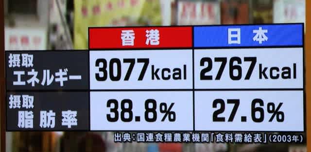その香港のカロリー摂取量はニッポンの1.5倍ですわ。