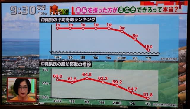 実際、沖縄では脂肪の摂取量の減少とともに、長寿ランキングが下がっておる。