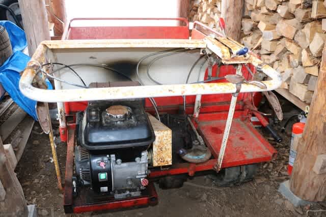 まずは割った薪を運ぶ運搬機のオイル交換だ。