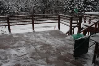 二度寝しちゃって、7時に起床し、デッキの雪かきをしておりました。