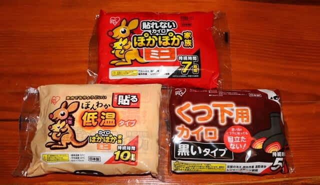 今朝の写真は、おぢが重宝しておる各種カイロをご紹介。