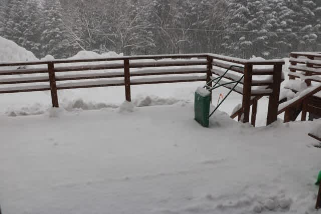 ニャンコにご飯を与えてから、この2日間デッキに積もった雪を新潟で作られておるスノーダンプで片づけました。